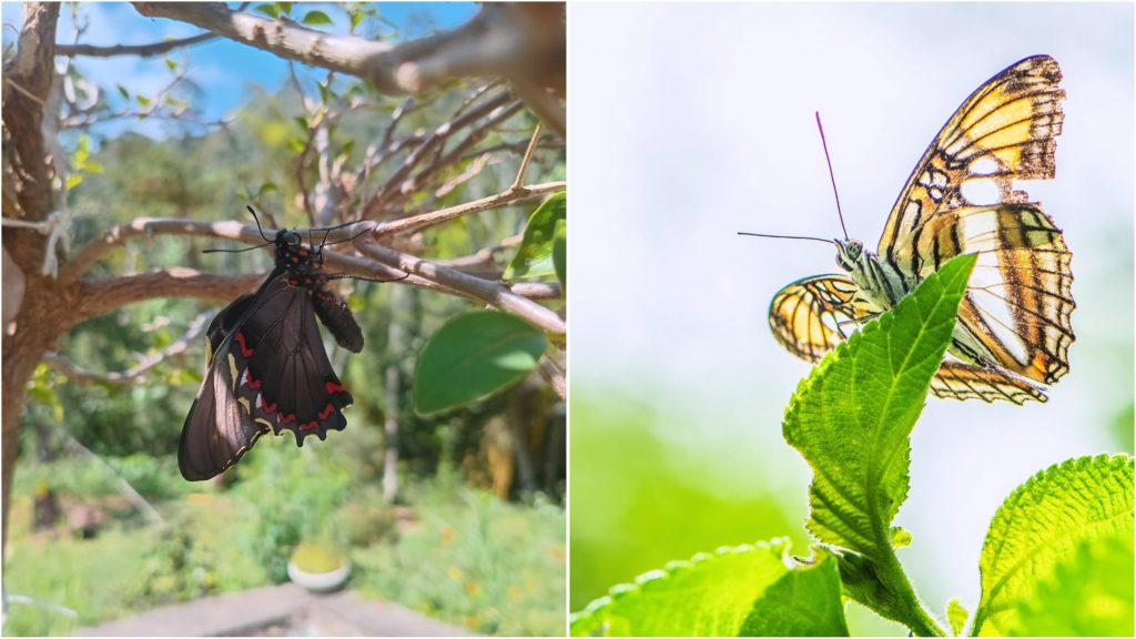 Durante o passeio no local, os visitantes veem a criação, o processo da metamorfose e apreciam as borboletas voando livremente no jardim.