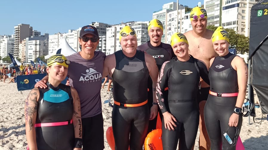 No último final de semana, a equipe de águas abertas da academia Acqua Fitness, em Petrópolis, participou da etapa Rio de Janeiro do circuito Mundial Ocean Man. Os 10 primeiros colocados de cada faixa etária (nas provas de 2km, 5km e 10km) se classificaram para final mundial, que acontece em dezembro em Dubai, incluindo alguns petropolitanos.