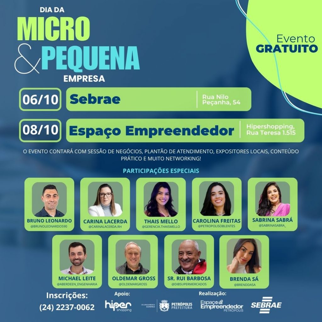 No dia da Micro e Pequena Empresa você vai aprender técnicas de vendas e gestão de pessoas, conhecer empresários locais e ainda participar de uma sessão de negócios para ampliar suas conexões. Palestras inspiradoras e painéis interativos, networking e sessão de negócios para ampliar conexões, expositores locais e parceiros estratégicos, consultorias com especialistas, contadores e advogados e oficinas práticas para impulsionar seu negócio.