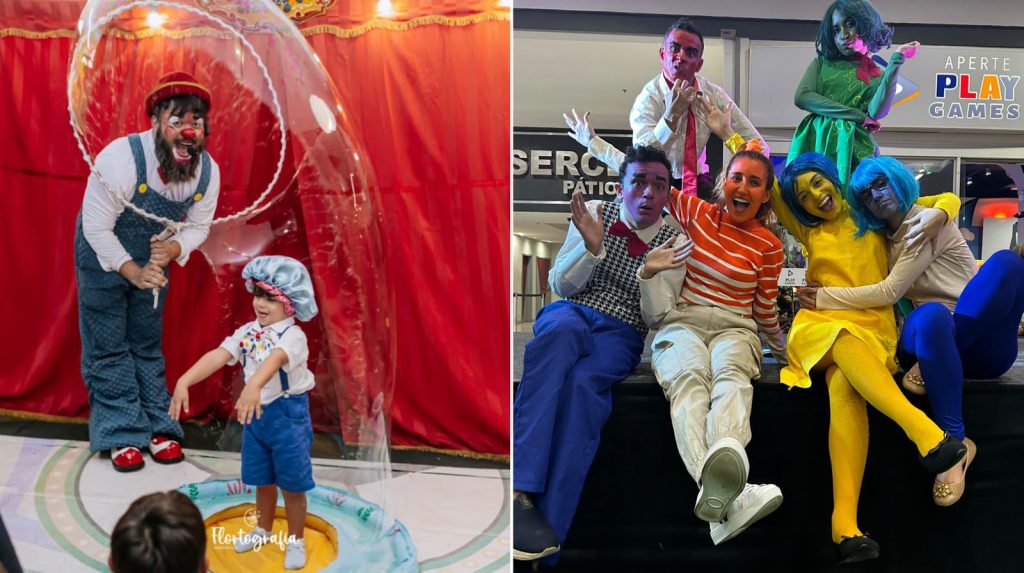 Palhaçaria e espetáculo no Shopping Vilarejo