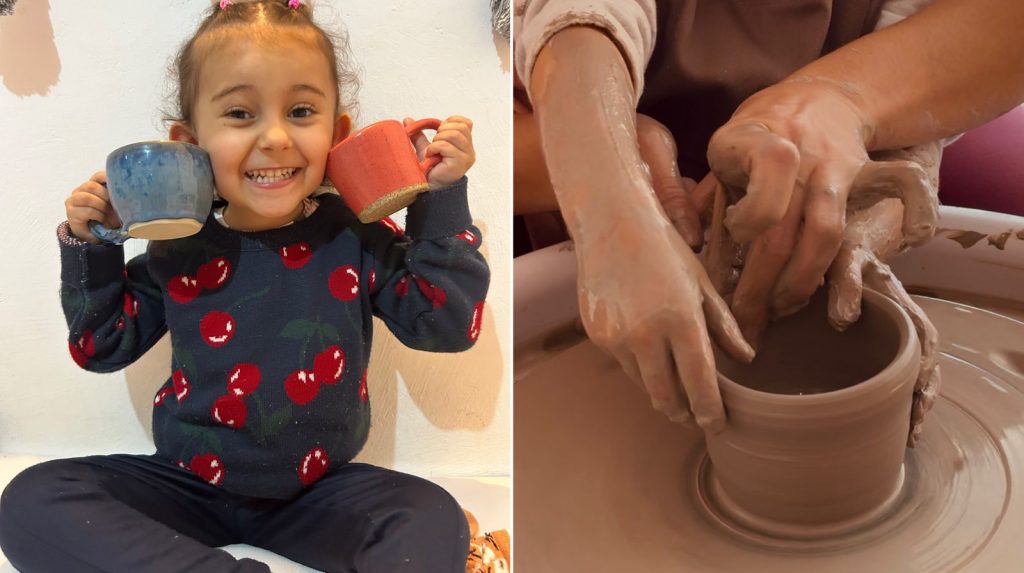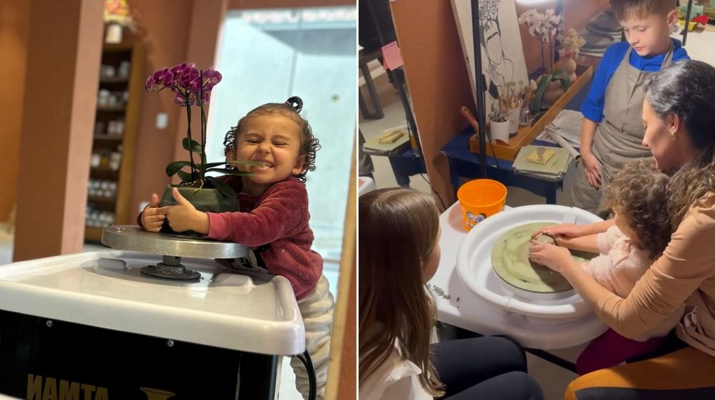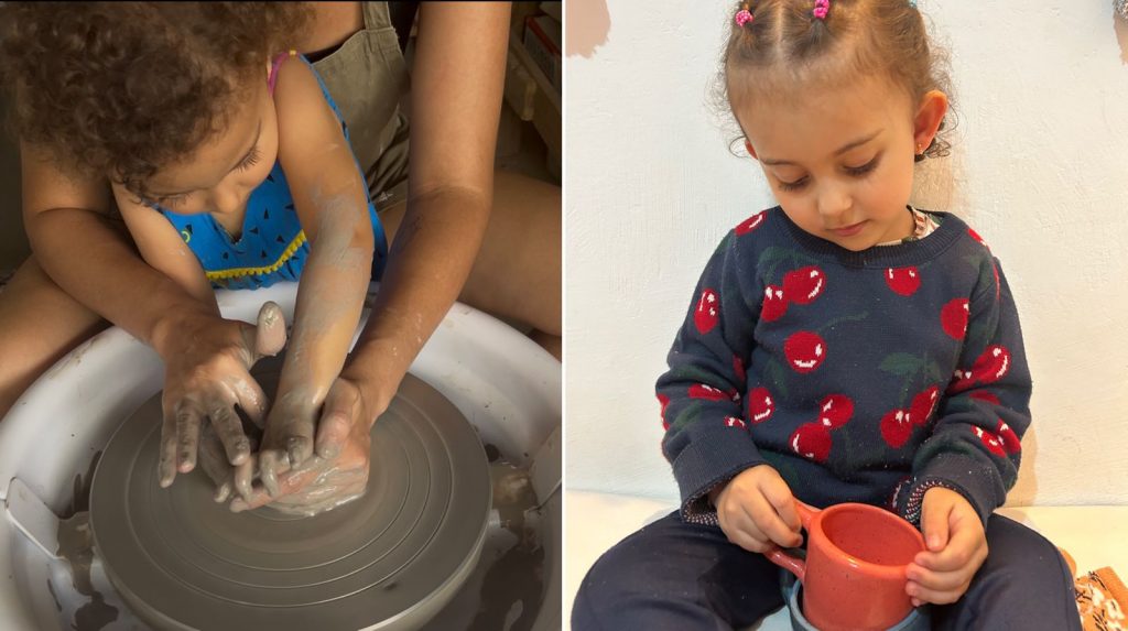 “Ela achou o máximo e disse que fazia cócegas nas mãozinhas. Fiquei surpresa com a delicadeza com que tratou a argila — sem força, sem pressa. Eu ajudei a centralizar e ela fez o furo para abrirmos a caneca. Me emocionei!”, lembra Lívia.
