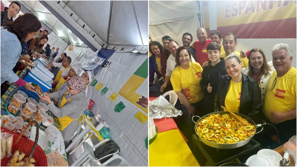A barraca da Itália contará com lasanha, nhoque, pizzas e palha italiana; a de Portugal terá bolinho de bacalhau, sardinha e doces portugueses; a da Espanha, paella e hamburgueres artesanais; a da Alemanha, chucrute, joelho, sanduíche de pernil, salada de batata, salsichão, croquete e strudel e, pra finalizar, a do Brasil servirá espetinhos de carne, linguiça e porco, e a tradicional comida mineira.