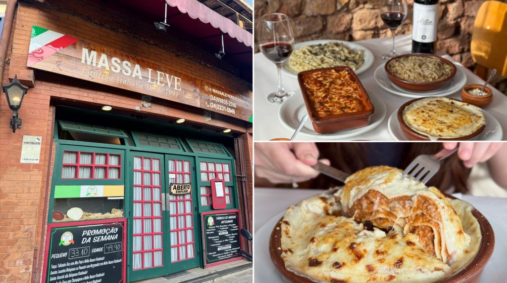 O Massa Leve Restaurante é uma verdadeira cantina italiana, com massas frescas e molhos preparados artesanalmente. No cardápio, opções como lasanha, canelone, talharim, gnocchi e fettuccine dividem espaço com camarões, cortes de carne, pizzas, bruschettas e delícias como pão de alho, tostas e a tradicional provoleta napolitana — tudo servido com o sabor e fartura típicos da Itália.