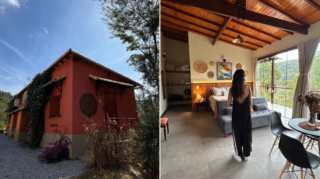 A Vila Calp Guest House é uma charmosa casa vermelha em meio à natureza, com clima de novela de época e dois lofts completos e equipados para uma estadia tranquila e confortável. A área externa é um convite ao relaxamento, com piscina, ducha com vista para as montanhas, redário e espaço para fogueira — o cenário perfeito para quem busca descanso e contato com a natureza.
