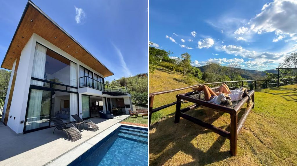 A Casa de Areal é uma hospedagem moderna e aconchegante, totalmente integrada à natureza e com uma linda vista para as montanhas. Localizada em um condomínio fechado e tranquilo, oferece fácil acesso à BR-040 e está a apenas 5 minutos da vinícola Borgo Del Vino, do Celeiro Monte Alto e do centro de Areal, além de ficar a 20 minutos de Itaipava e 25 minutos de Secretário. A casa conta com suítes, piscina, churrasqueira, cozinha completa integrada à sala, além de área de jantar interna e externa com mesa. A Casa também conta com serviços extras, como cozinheira, churrasqueiro e massagista, garantindo uma estadia prática e relaxante em meio às montanhas de Areal.