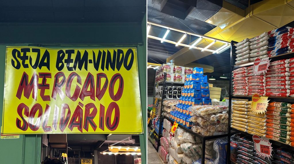 Cada família atendida sai do mercado com uma “compra” equivalente a R$ 700, utilizando créditos simbólicos para escolher livremente os itens.