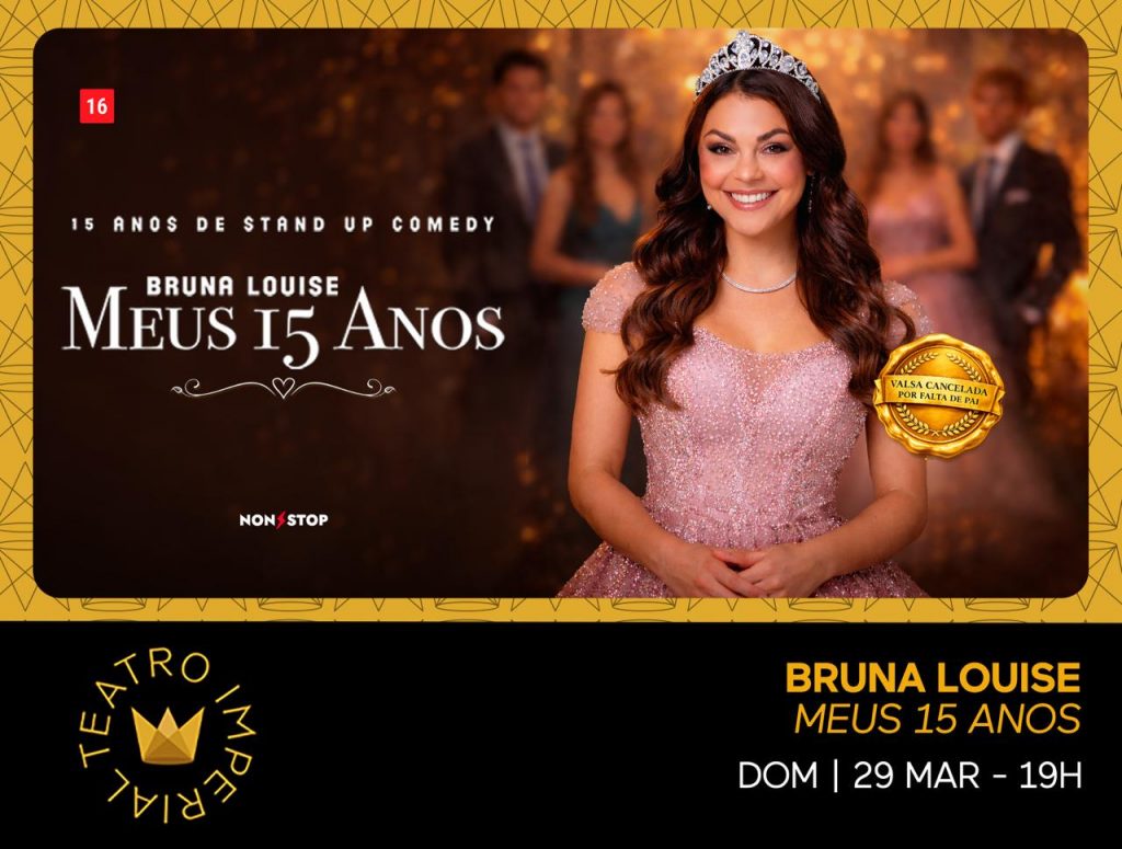 Como parte das ações em comemoração ao Mês da Mulher, o Teatro Imperial recebe, no dia 29 de março, às 19h, um dos principais nomes femininos do humor na atualidade. Bruna Louise, que soma mais de 6 milhões de seguidores nas redes sociais, inclui Petrópolis entre as cidades que recebem o show inédito “Meus 15 Anos”, celebrando as conquistas e a trajetória de sua carreira como comediante.