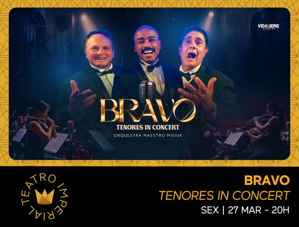 Bravo Tenores in Concert apresenta espetáculo com canções italianas. Um show inteiro com os maiores clássicos italianos em um palco com três tenores acompanhados de uma orquestra. É o que promete o espetáculo Bravo Tenores In Concert, com os renomados tenores Marcello Vannucci, Tenor Leone e CaJunior, acompanhados de uma orquestra com a regência do maestro Renato Misiuk.