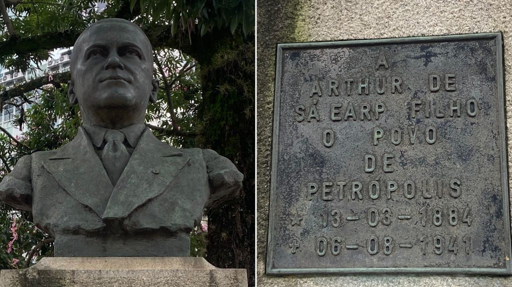 Em meio ao movimento diário da via, por onde passam dezenas de pessoas, está o busto de Arthur de Sá Earp Filho, médico e figura marcante da história petropolitana. Nascido em 13 de março de 1884, Arthur de Sá Earp Filho era filho de Arthur de Sá Earp e de Ana Oliveira de Sá Earp. Seguindo os passos do pai, tornou-se médico clínico e ganhou destaque pela rara vocação profissional, aliada ao profundo humanismo e à dedicação integral aos pacientes.