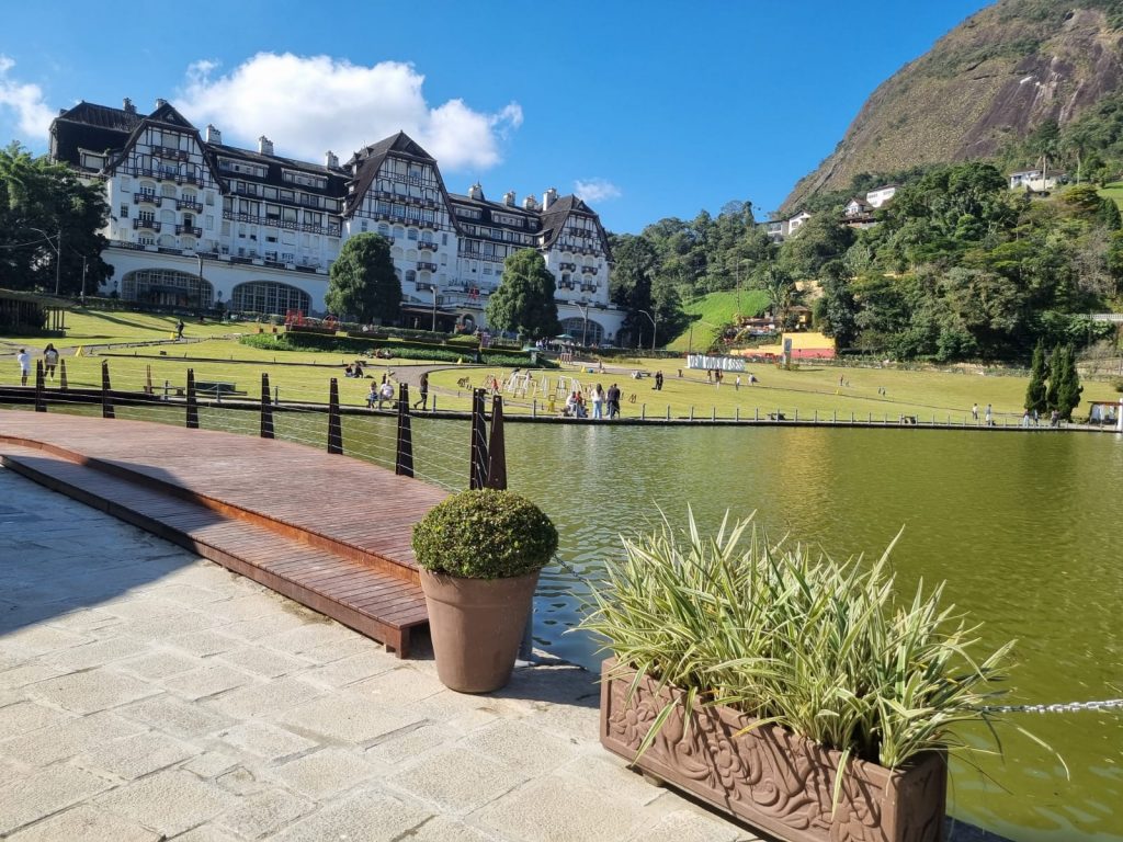 O entorno do lago do Palácio Quitandinha, em Petrópolis, passou por uma reforma recente e voltou a ser uma opção de lazer ao ar livre para moradores e visitantes. O deck próximo à churrascaria foi recuperado, assim como estruturas como o pergolado e o farol, que fazem parte da paisagem do local.