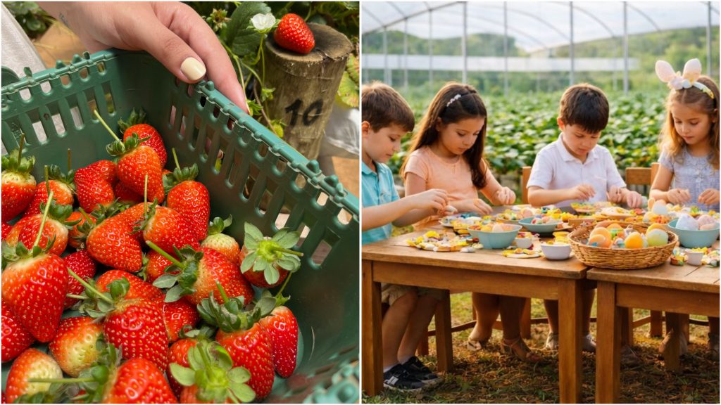O Morango do Vale funcionará normalmente, a partir das 8h30 para o café da manhã, colheita e lojinha. Mas de sexta (3) a domingo (5), o espaço terá, respectivamente, uma oficina de confeitaria infantil, oficina de pintura em ovos e itens de Páscoa e caça aos ovos, das 10h às 11h30.