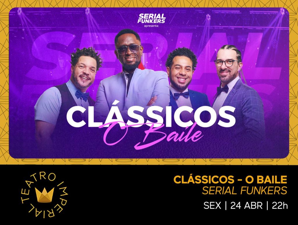 Reconhecida por releituras cheias de personalidade, groove e presença de palco, a Serial Funkers revisita clássicos internacionais como “You Make Me Feel Brand New” (The Stylistics), “September” (Earth, Wind & Fire) e “Don’t Stop Till You Get Enough” (Michael Jackson), além de hinos da música brasileira como “Descobridor dos Sete Mares” (Tim Maia) e “Mas Que Nada” (Jorge Ben Jor).