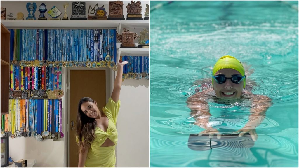 Neste Dia da Natação, comemorado em 8 de abril, Petrópolis tem um motivo especial para se orgulhar. A nadadora petropolitana Bela Faria, de 19 anos, já coleciona mais de 200 medalhas conquistadas em campeonatos ao redor do país, número que viralizou nas redes sociais após a atleta compartilhar seu mural de conquistas, um painel que virou símbolo da sua trajetória, disciplina e paixão pelo esporte.